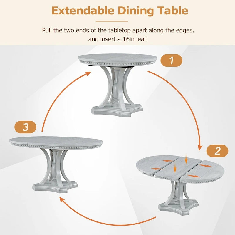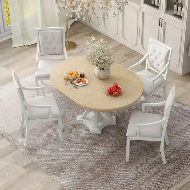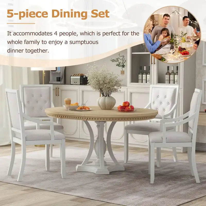 Ensemble de salle à manger 5 pièces : Cet ensemble de style rétro comprend une table ronde et quatre chaises. Il peut accueillir 4 personnes et est idéal pour partager un délicieux repas en famille. Avec son charme rustique, cet ensemble crée une ambiance romantique et élégante dans votre salle à manger.
