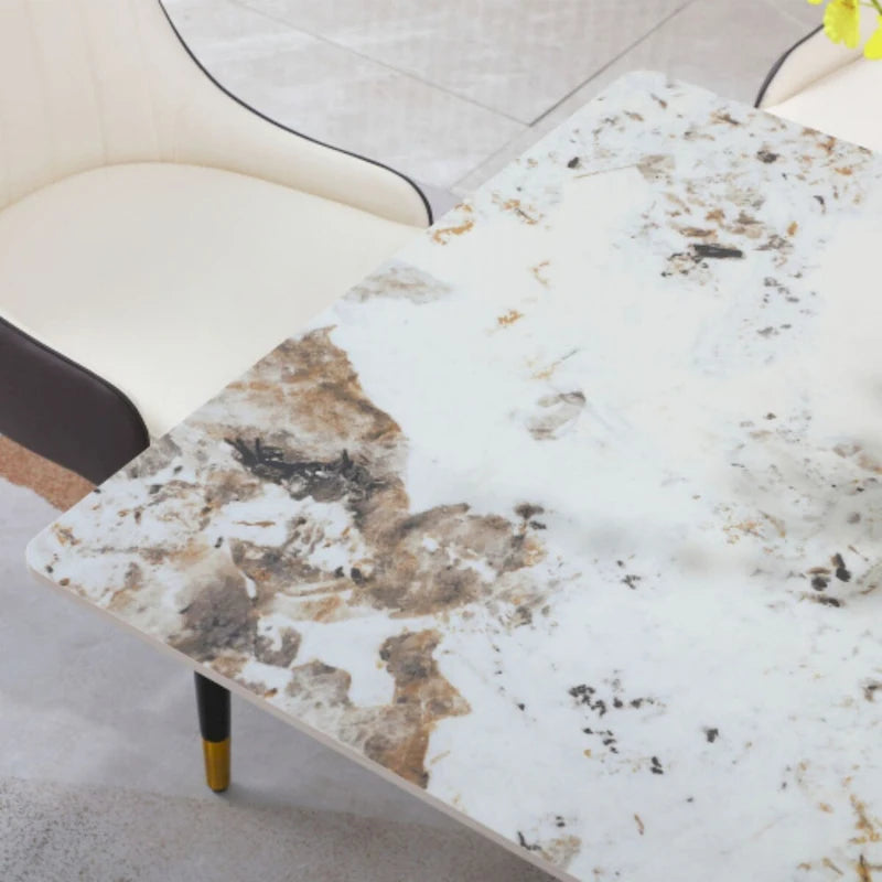 Ensemble table et chaises de salle à manger contemporaines en marbre doré de 71 pouces avec 6 chaises