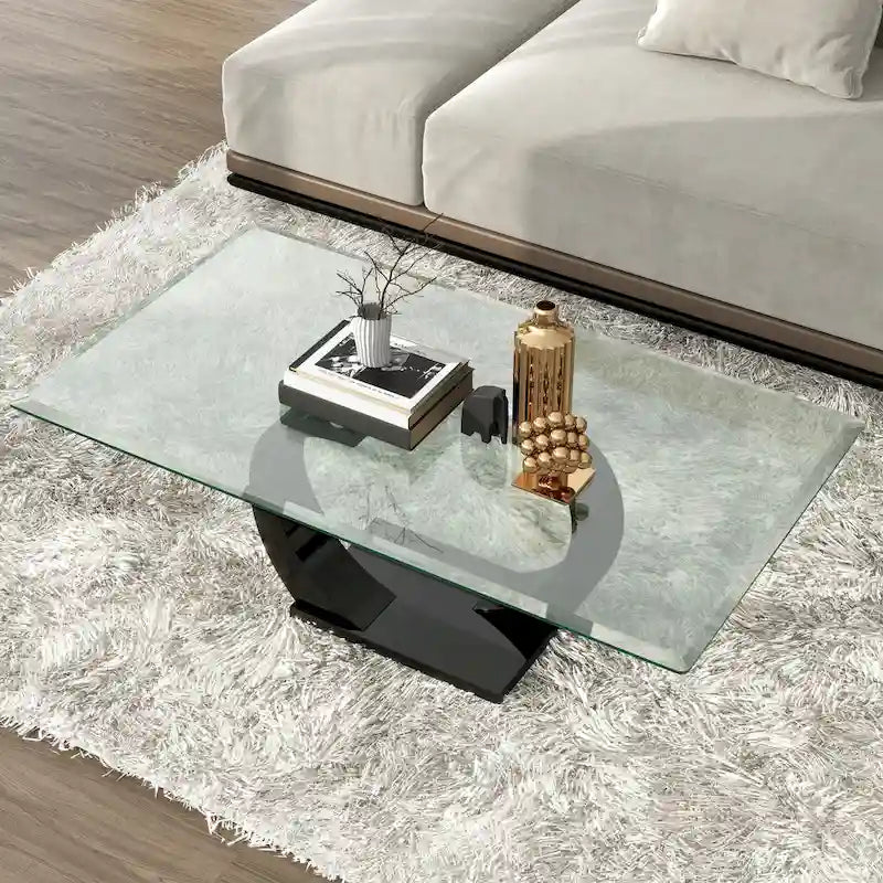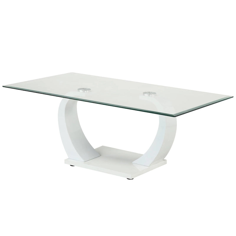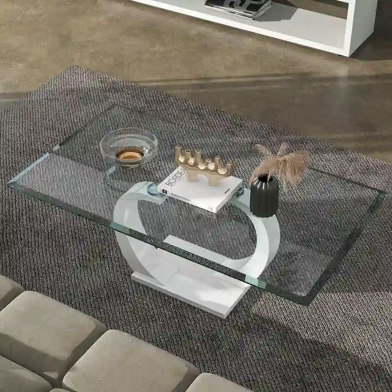 Les courbes gracieuses de cette table basse contemporaine en verre lui confèrent une allure élégante et sculptée. Le bord biseauté du plateau en verre transparent apporte une touche de légèreté à votre salon. Le double pied aux formes ondulées ajoute une finition brillante et épurée, pour une présentation sophistiquée et raffinée.