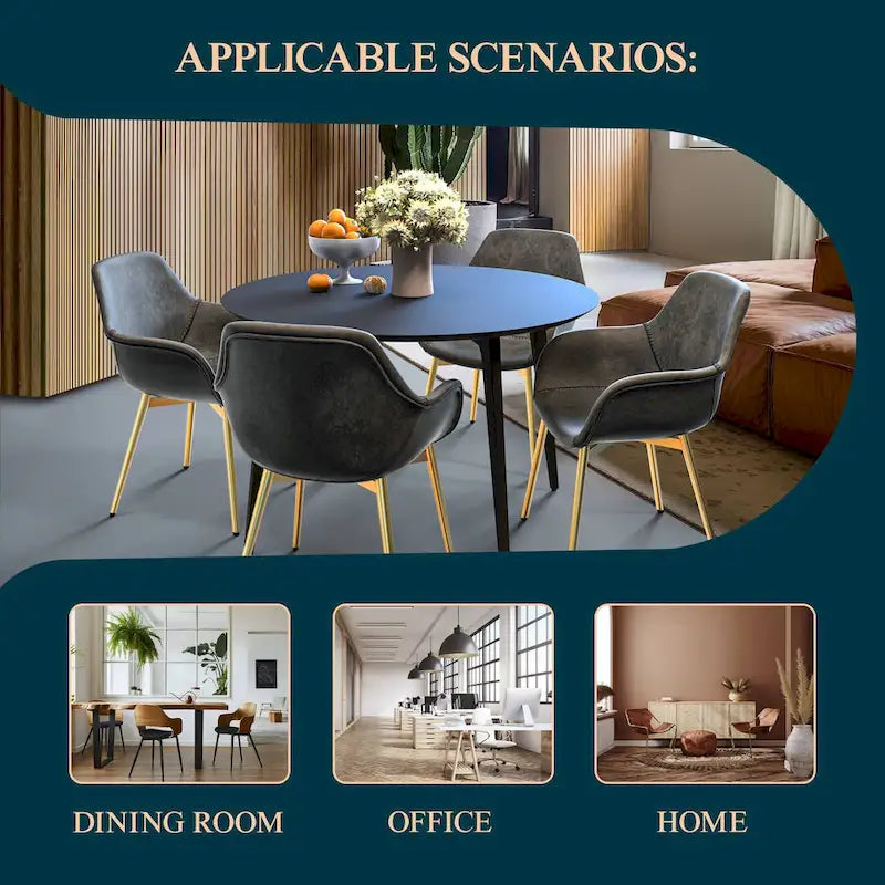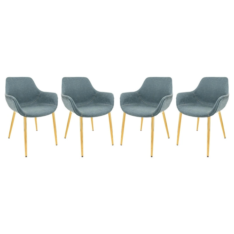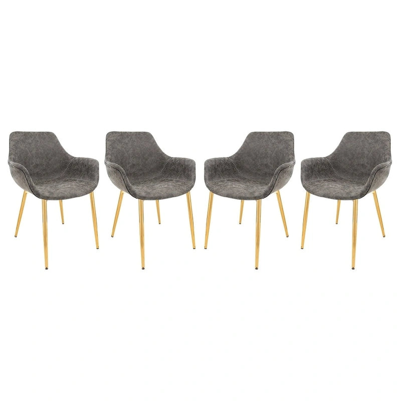 Ensemble de 4 fauteuils de salle à manger modernes Markley en cuir avec pieds en métal doré et chaise d'appoint